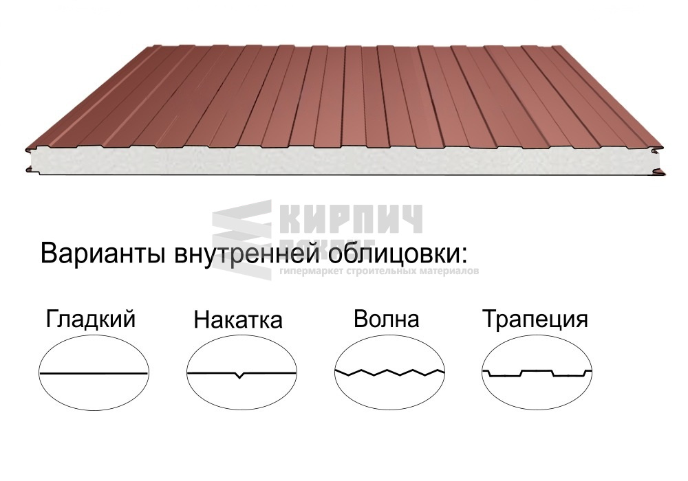 В интернет-магазине "Кирпич Вокруг" Вы можете купить Стеновая трёхслойная сэндвич-панель трапеция 50мм 1190мм с видимым креплением пенополиизоцианурат Полиэстер Металл Профиль в Казани, а наши специалисты готовы вам помочь с выбором по адресу: , или оказать консультацию по телефону: .